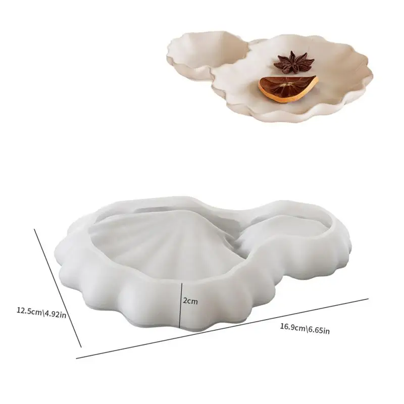 “Shell Tray Silicone Mold – Perfect for creating beautiful ocean-inspired candles, soaps, chocolates, or resin crafts. Made of flexible, non-stick silicone for easy demolding. Great for DIY projects and beach-themed decor!”